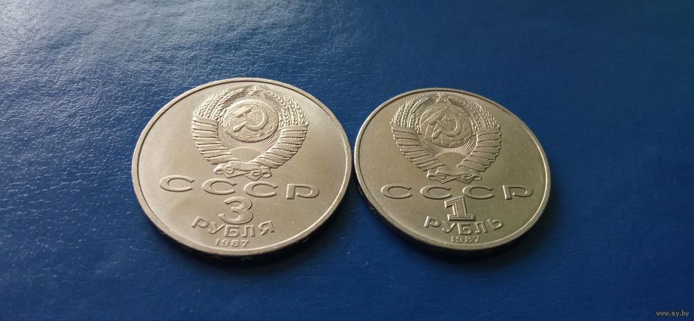3 и 1 рубль 1987 год СССР 70 лет ВОСР (Состояние на фото)
