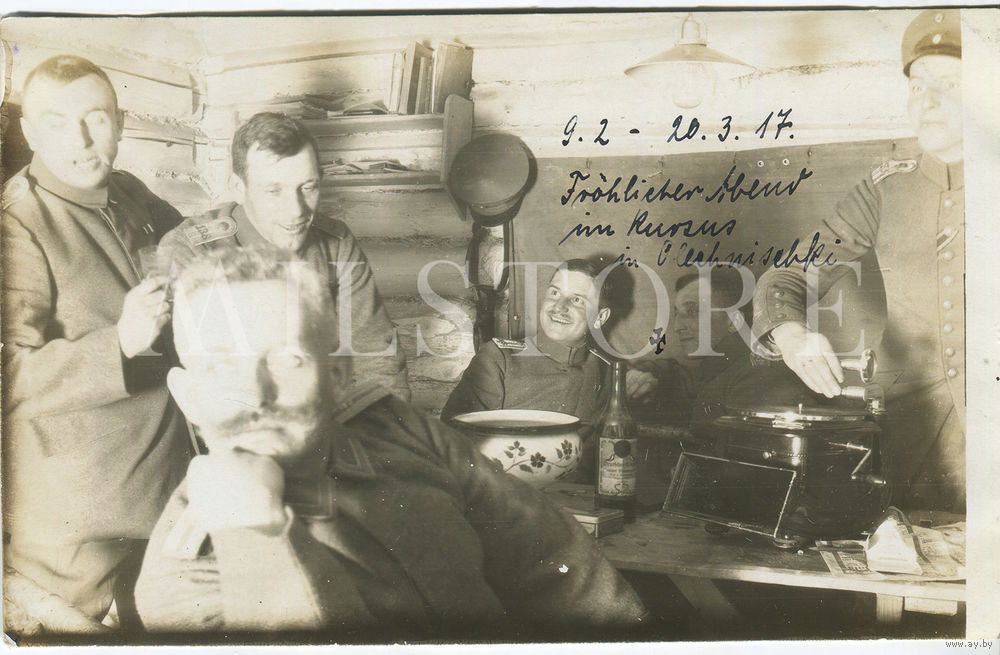 Фотография из альбома, принадлежавшего офицеру 3-го Нижнеэльзасского пехотного полка № 138. Фотографии сделаны в разных местах поставского р-на Витебской области Беларуси: Камаи, Можейки, Олешнички и др. Полк воевал у Постав и Нарочи. Размер около 9см. х 14 см.