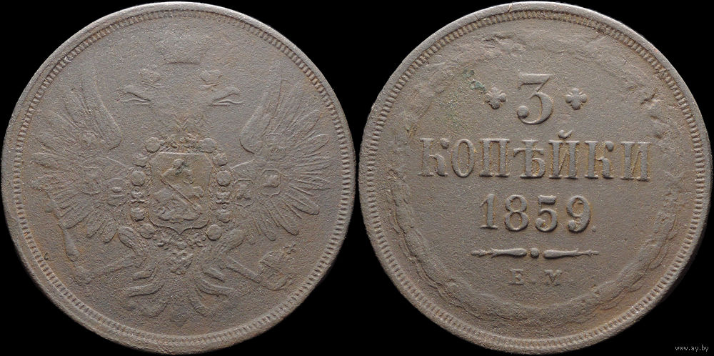 3 копейки 1859 ЕМ, Отличная! С 1 Рубля! Смотрите другие лоты!