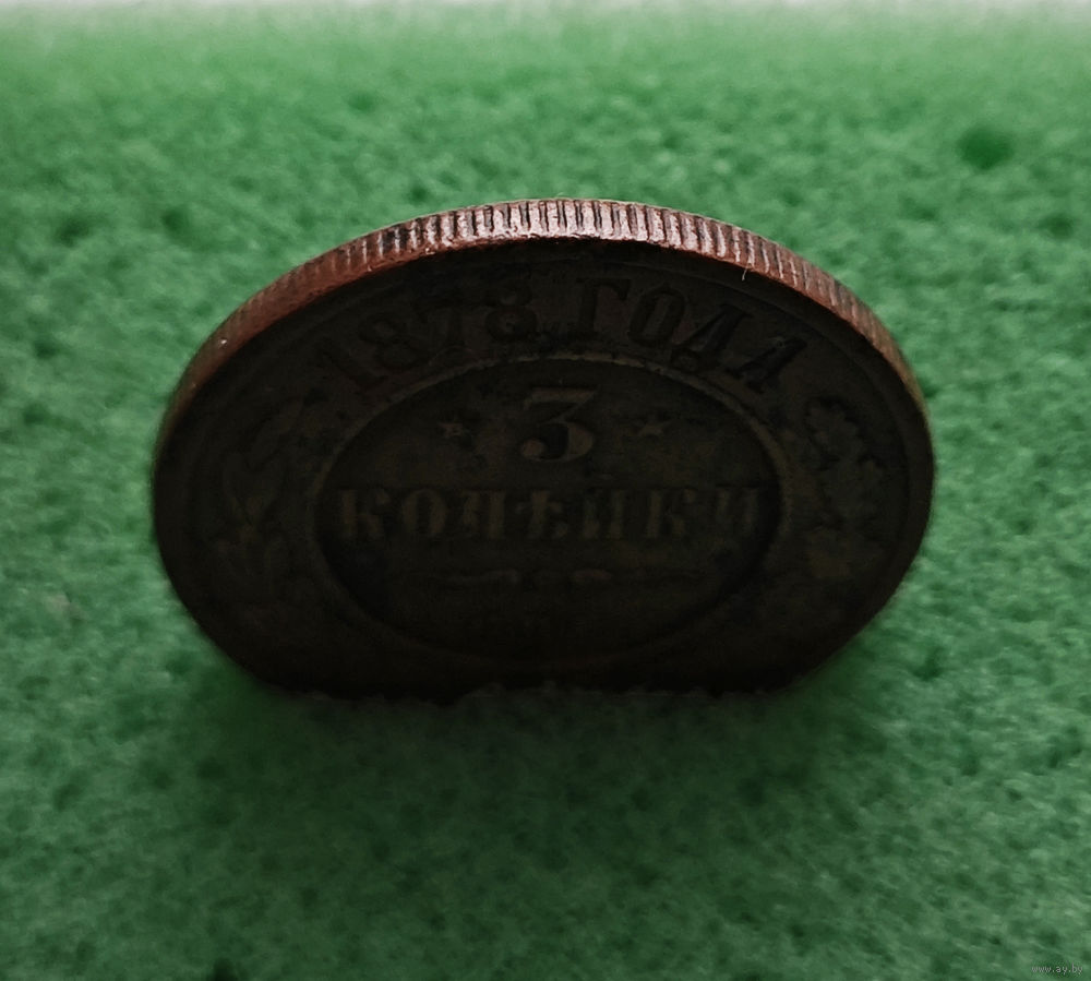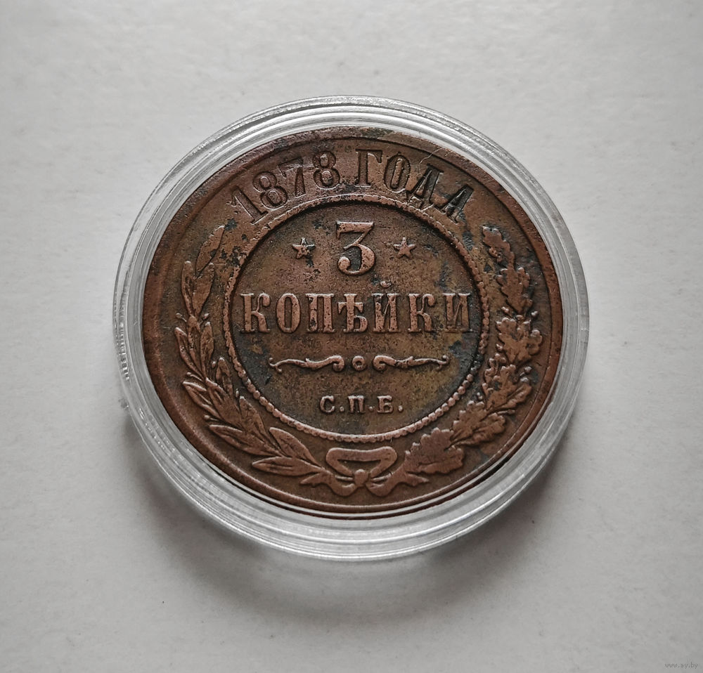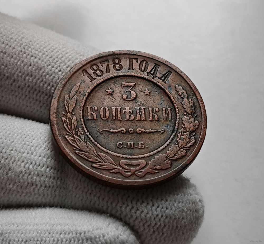 Перед нами монета 3 копейки, выпущенная в 1878 году Санкт-Петербургским монетным двором (СПБ), в 1878 году введена в обращение.