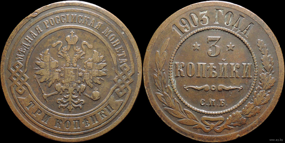 3 копейки 1903, Кабинетная! Нечастая! С 1 Рубля! Смотрите другие лоты!