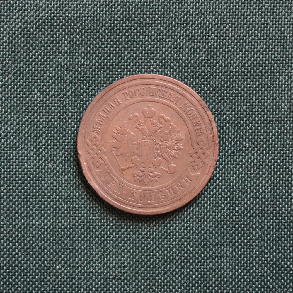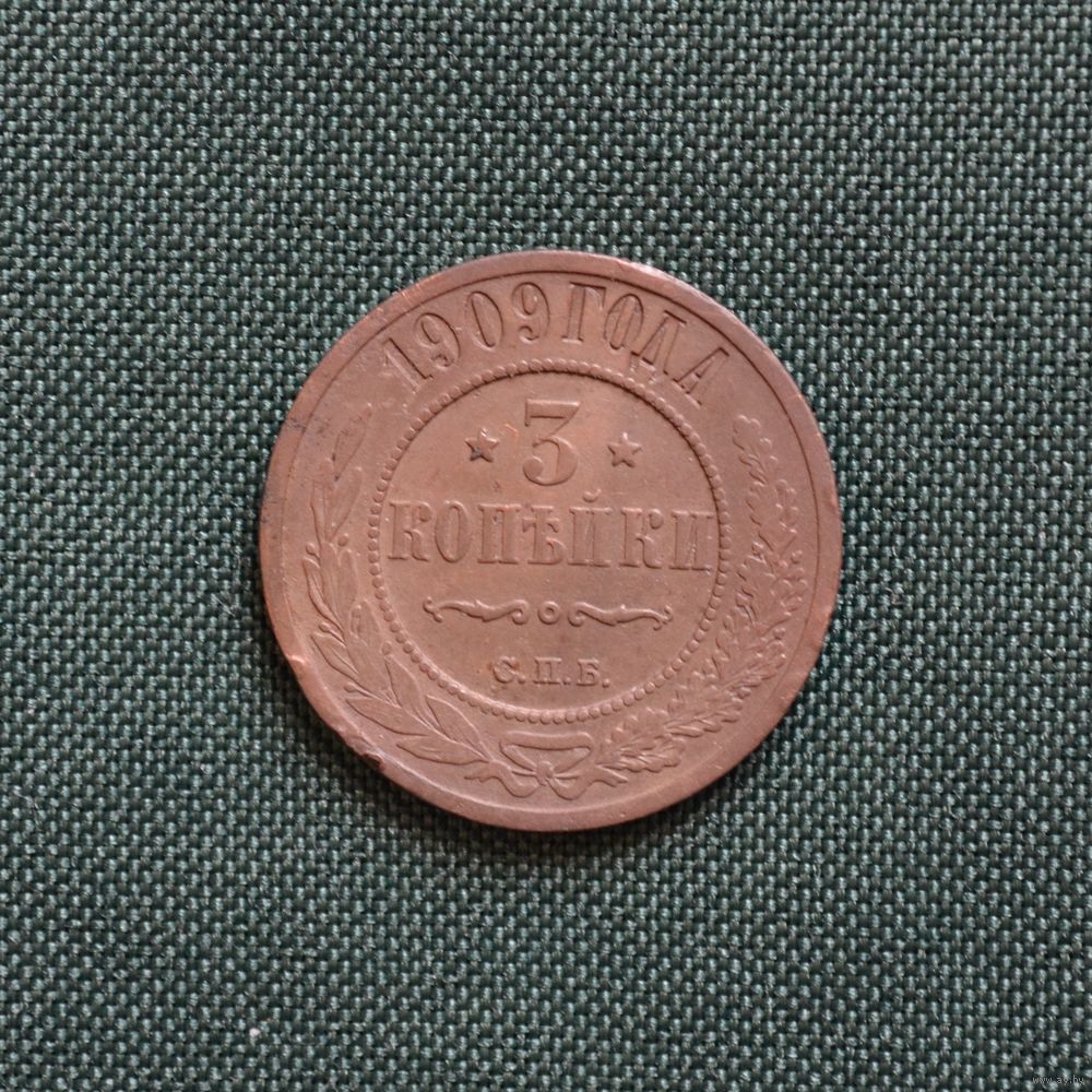 3 копейки 1909 года. Медь. Монета выставлена из личной коллекции.