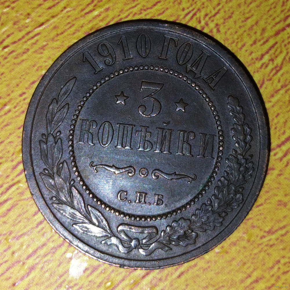3 копейки 1910 года в отличном состоянии.