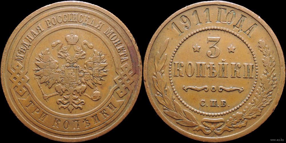 3 копейки 1911, Отличная! Кабинетная! С 1 Рубля! Смотрите другие лоты!