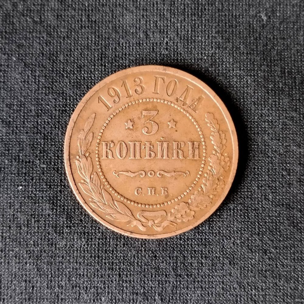 3 копейки 1913 года. Медь. Монета выставлена из личной коллекции.