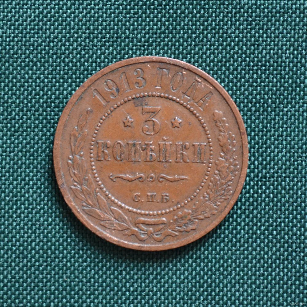 3 копейки 1913 года. Медь. Монета выставлена из личной коллекции.