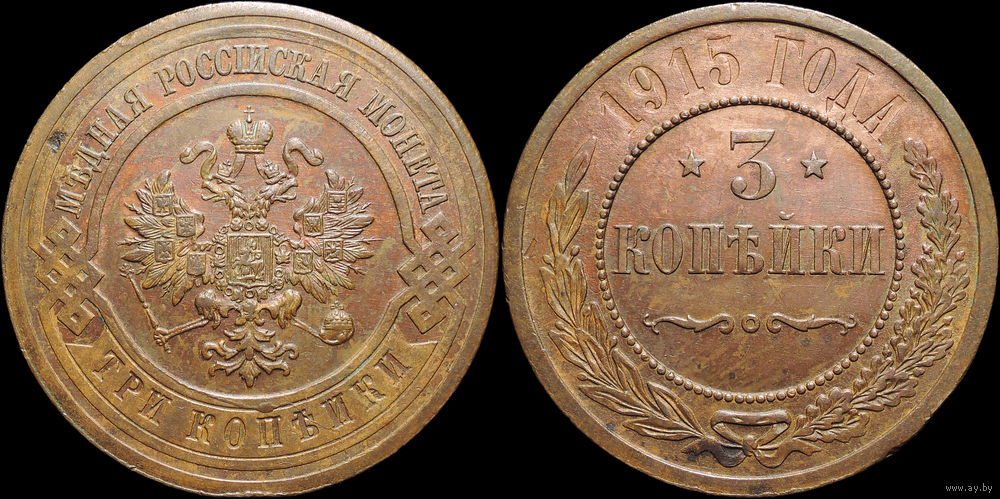 3 копейки 1915, aUNC, Отличная! С 1 Рубля! Смотрите другие лоты!