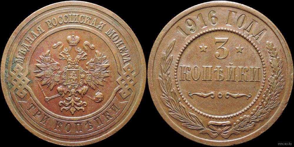 3 копейки 1916, aUNC, Кабинетная! С 1 Рубля! Смотрите другие лоты!