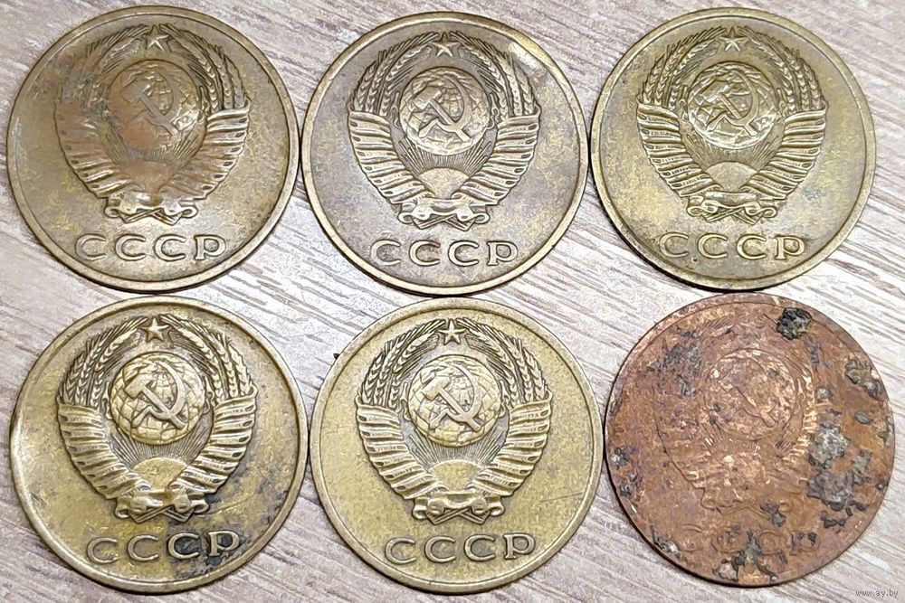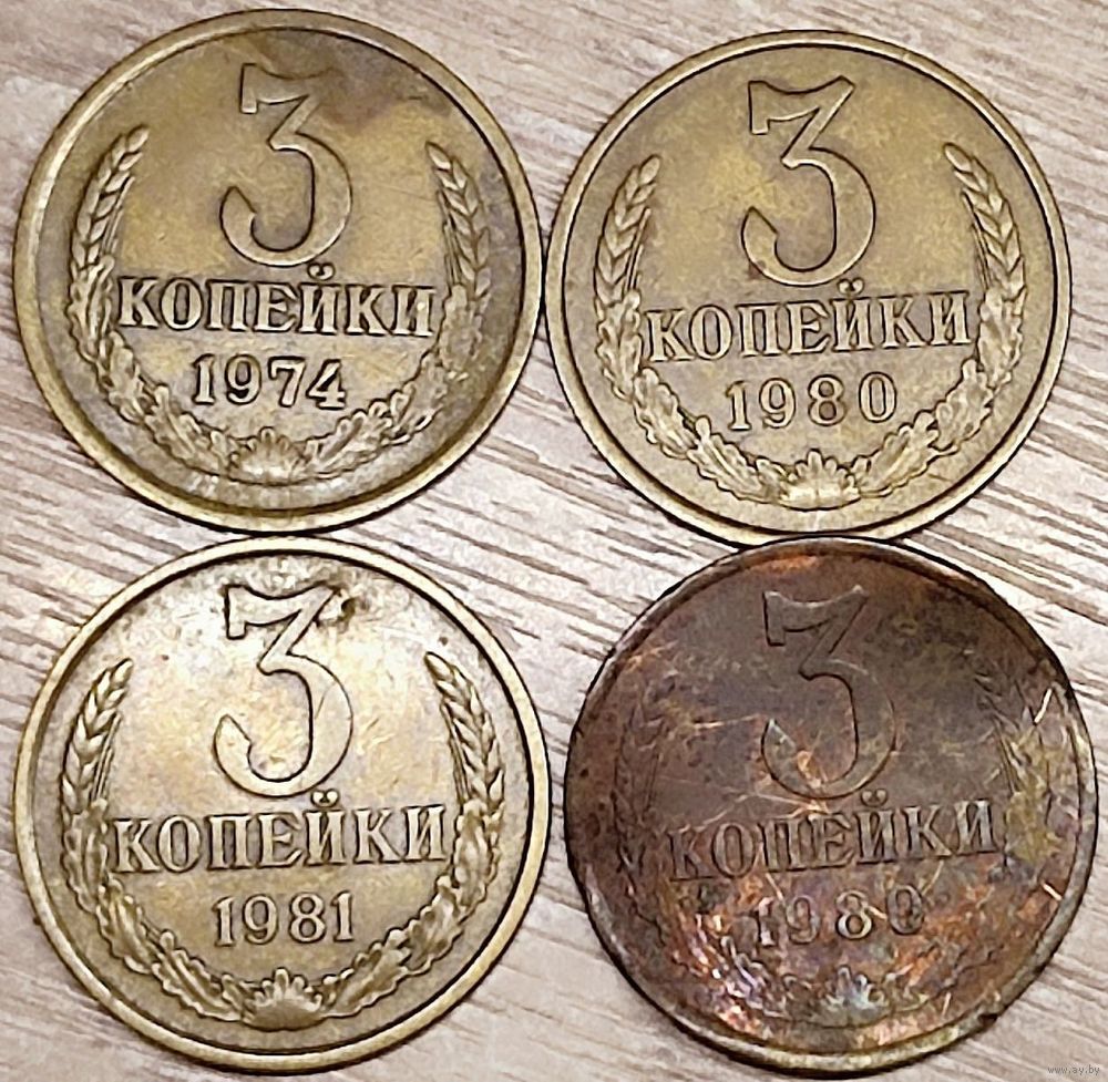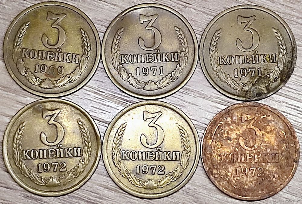 Лот монет номиналом 3 копейки 1969-1981 СССР общим количеством - 10шт: