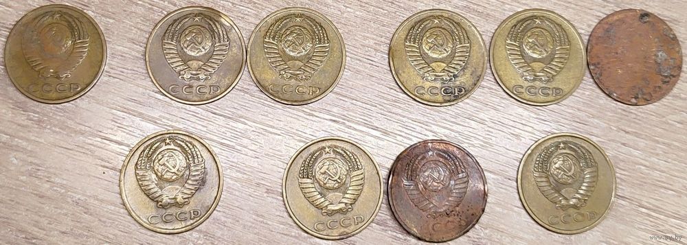 Лот монет номиналом 3 копейки 1969-1981 СССР общим количеством - 10шт: