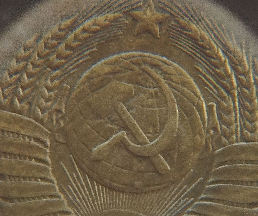У левого первого от земного шара колоса, с внутренней стороны три ости, между вторым колосом и стеблем третьего колоса, из под ленты нет выходящей ости, на африканском континенте Гвинейский залив четко выражен, размер герба увеличен.