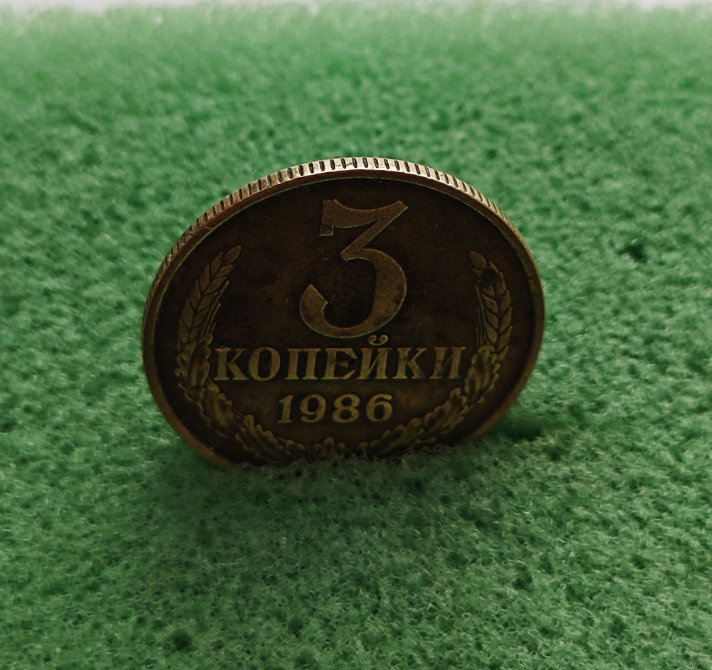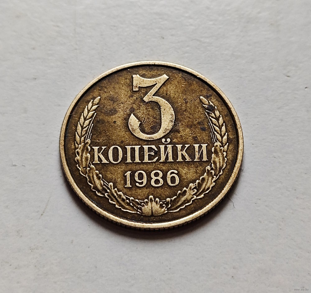 Перед нами монета 3 копейки, выпущенная в 1986 году, в 1986 году введена в обращение.
