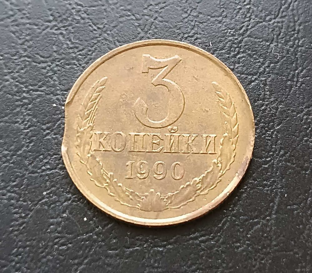 3 копейки 1990г. СССР. Брак. Выкус.