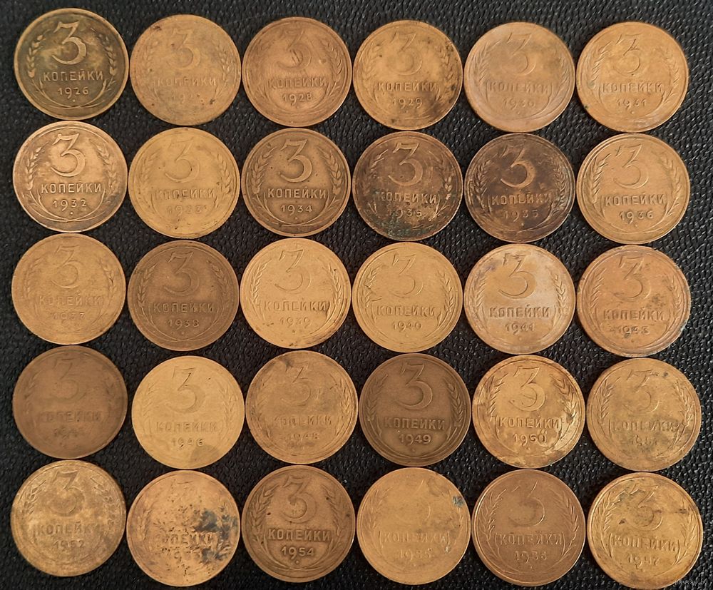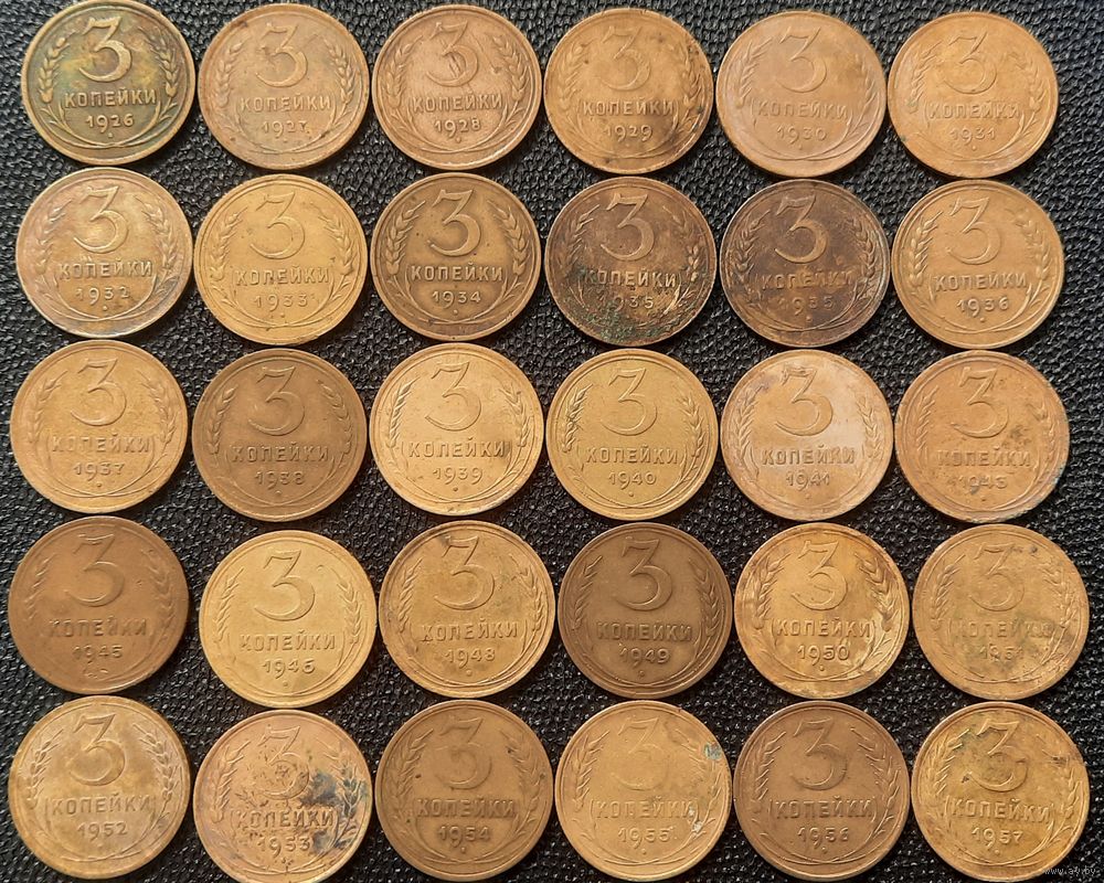 Полный набор монет 3 копейки СССР 1926-1957 гг.