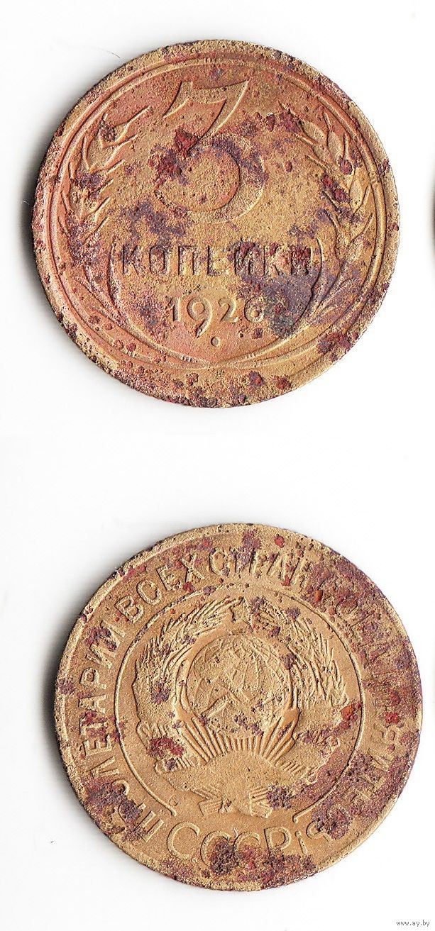 3 копейки СССР 1926 года, состояние отображено на скане.