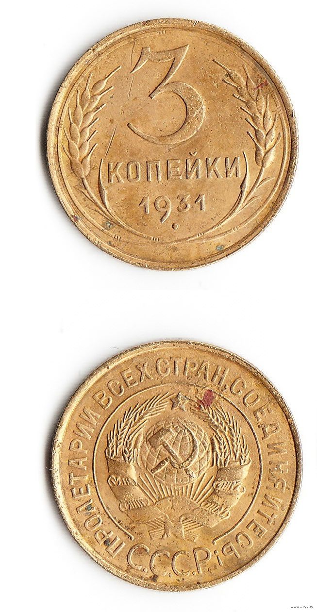3 копейки СССР 1931 года, состояние отображено на скане.
