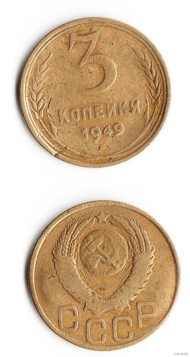 3 копейки СССР 1949 года, состояние отображено на скане.