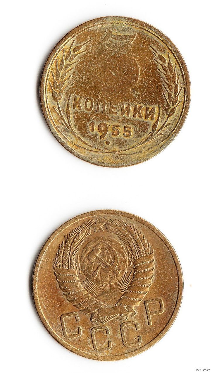 3 копейки СССР 1955 года, состояние отображено на скане.