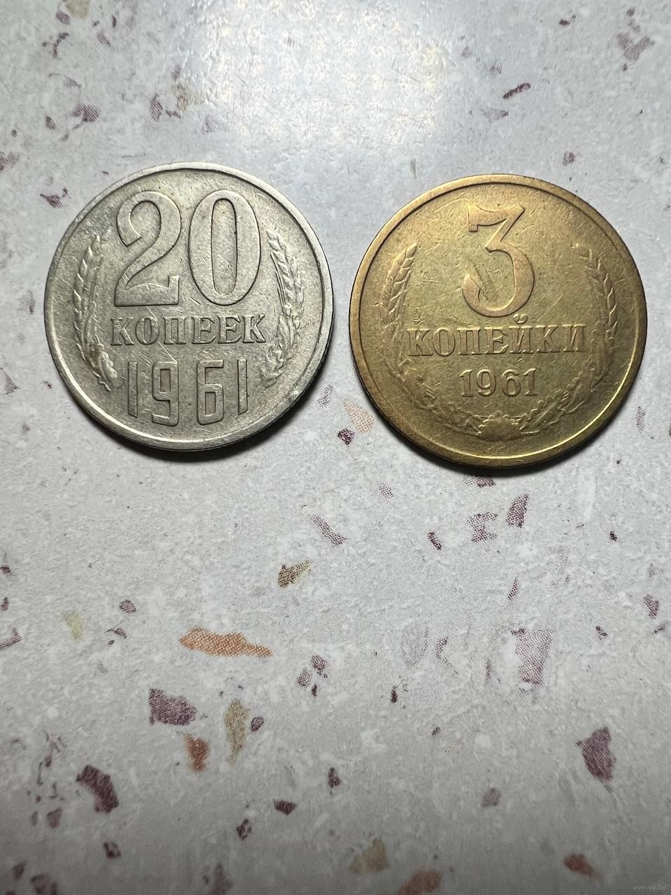 3 копейки СССР 1961 года. Лицевая сторона перепутка от 20 копеек .