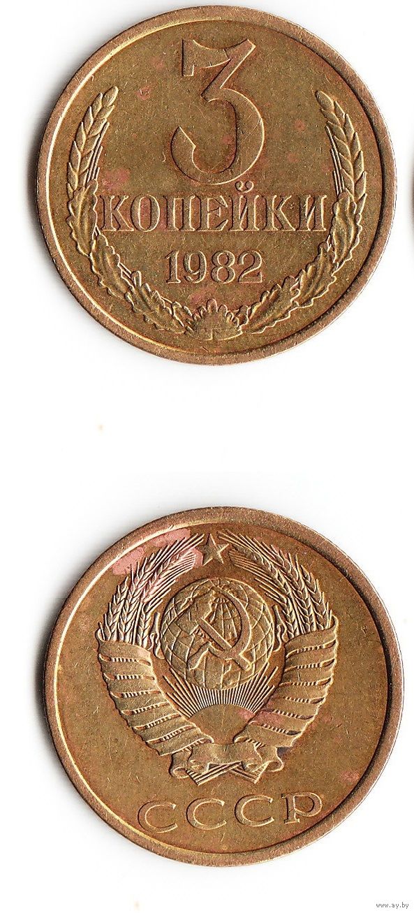 3 копейки СССР 1982 года, состояние отображено на скане.