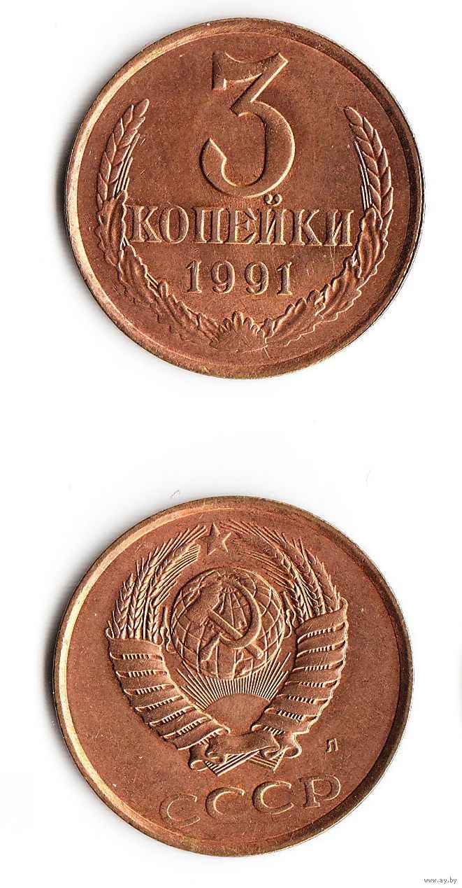 3 копейки СССР 1991 года, состояние отображено на скане.