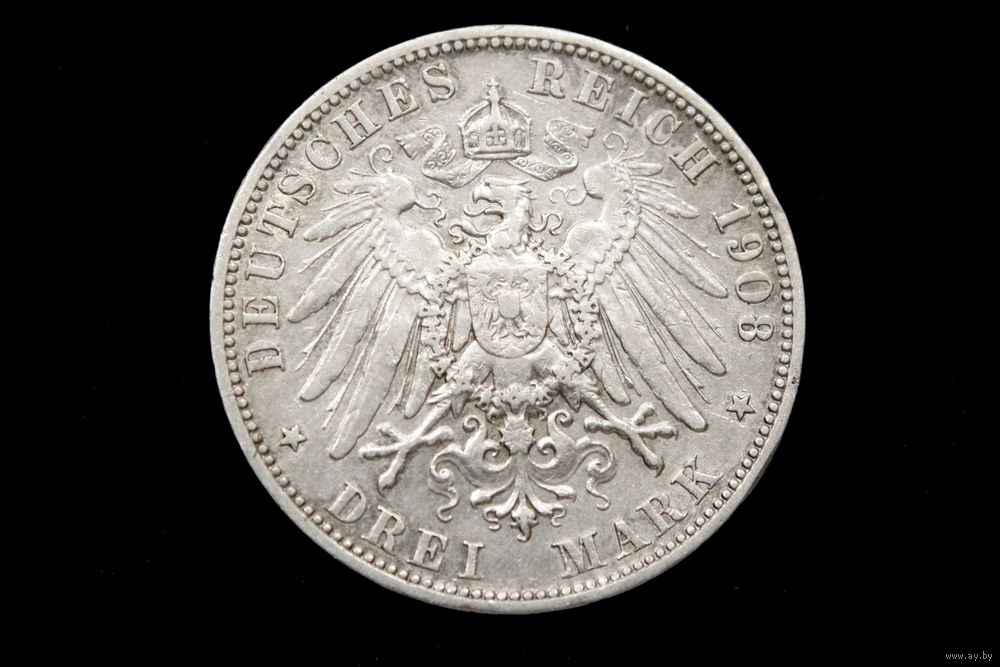 3 марки 1908 г. Пруссия (Германия), Вильгельм II