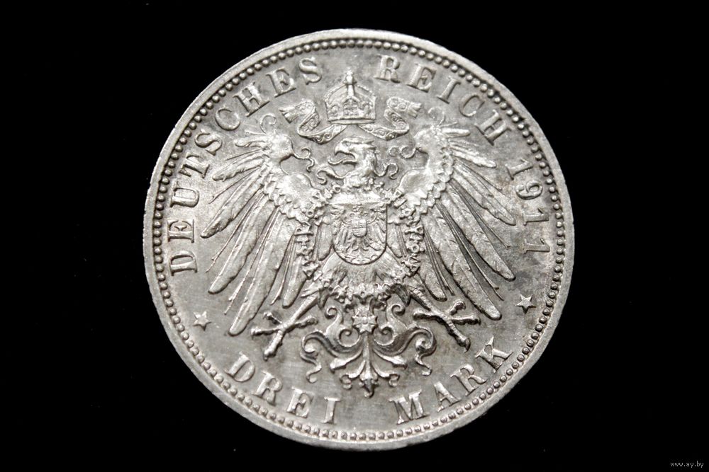 3 марки 1911 г. Бавария (Германия), Вильгельм II. "90 лет со дня рождения Луитпольда Баварского". Штемпельный блеск!