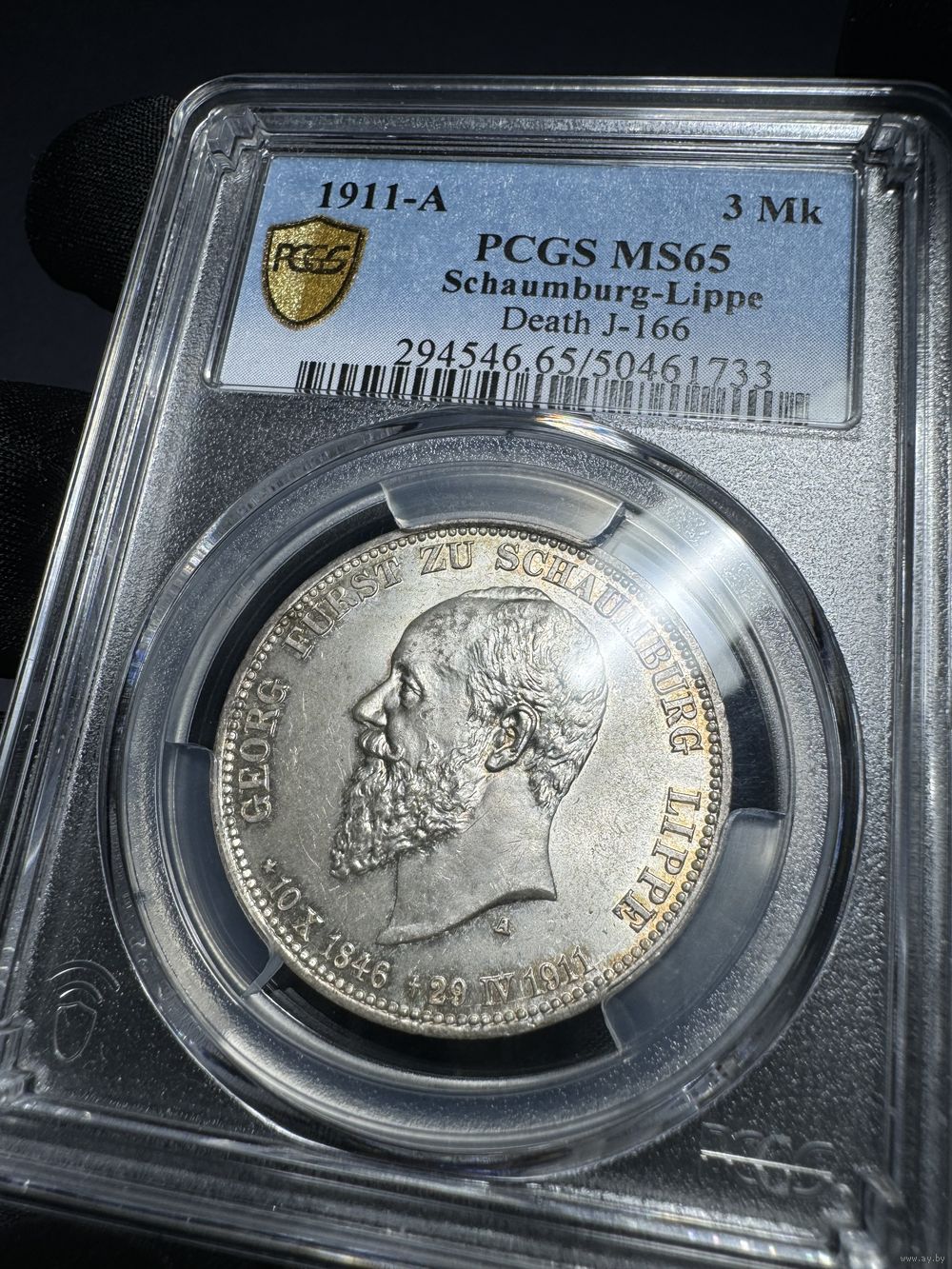 3 марки 1911 Шаумбург Липпе Германия в слабе PCGS MS65