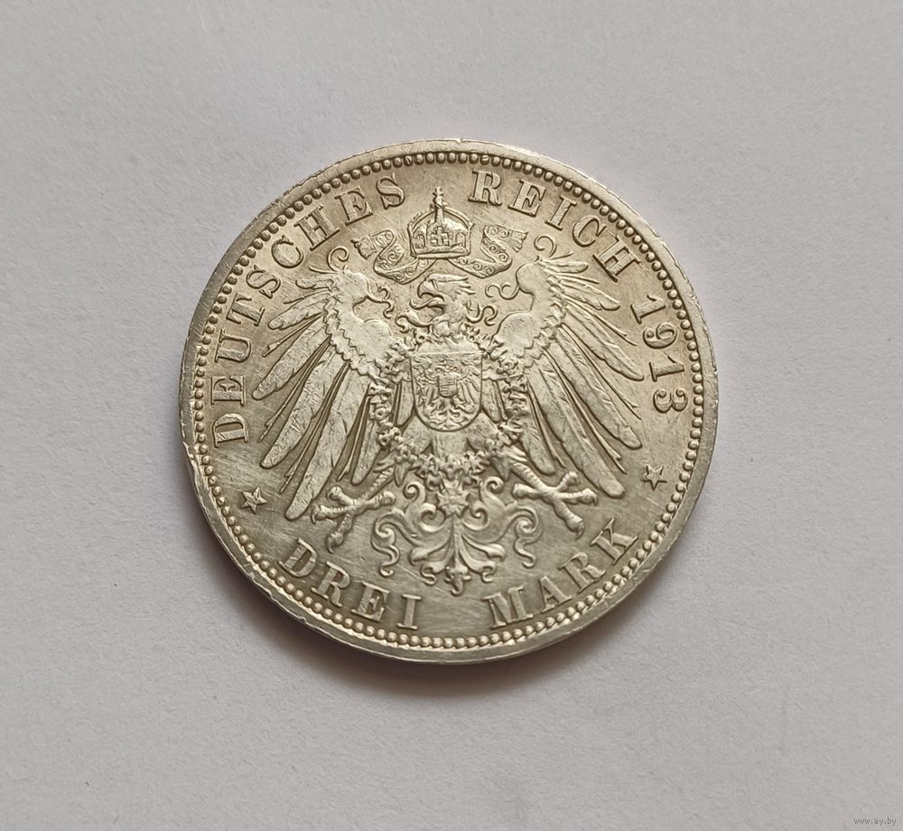 3 марки 1913 г. 900пр., серебра. Пруссия.Германия !