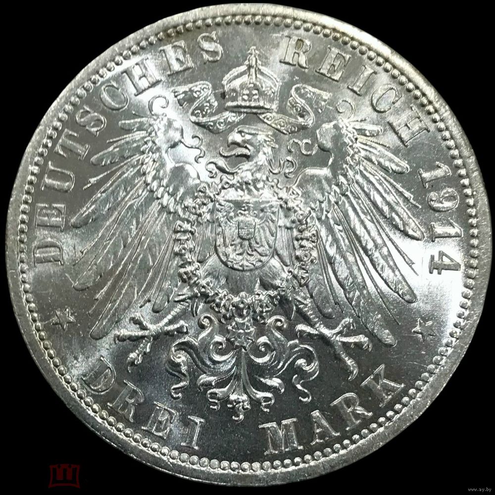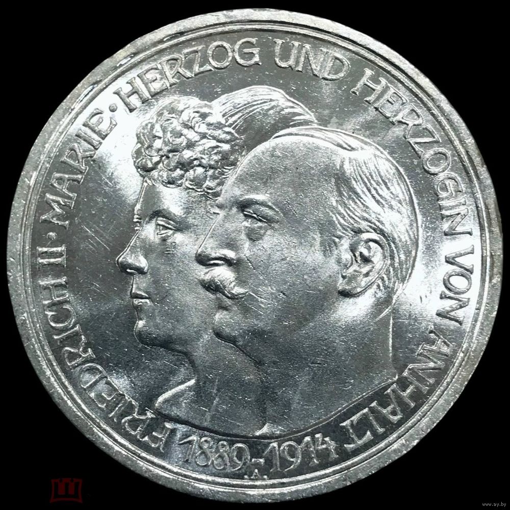 3 марки 1914 Анхальт ярчайший! Германская империя! Нечастое серебро!