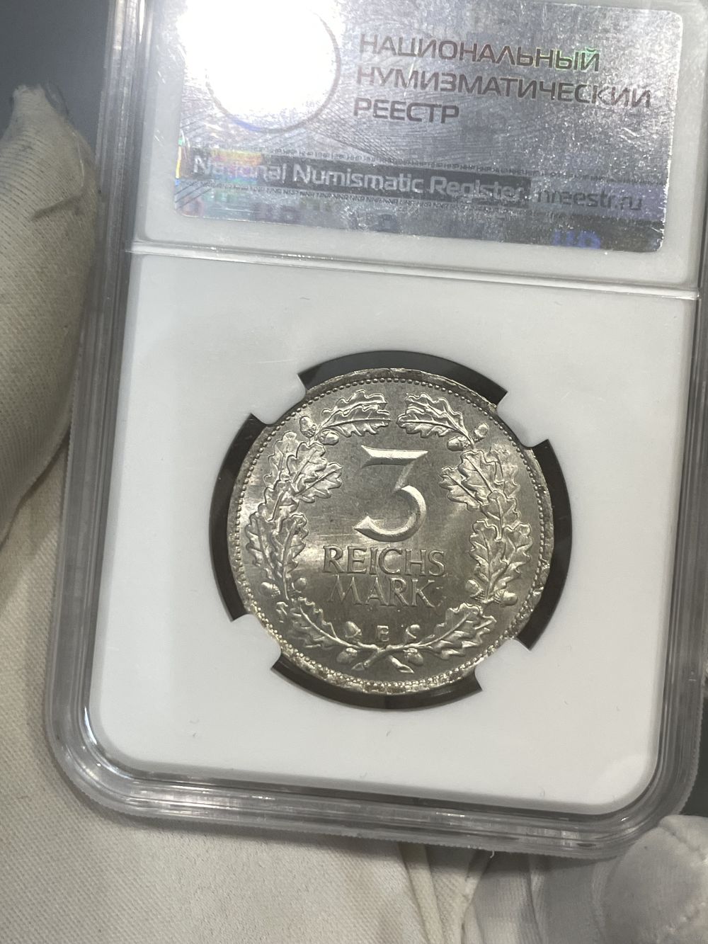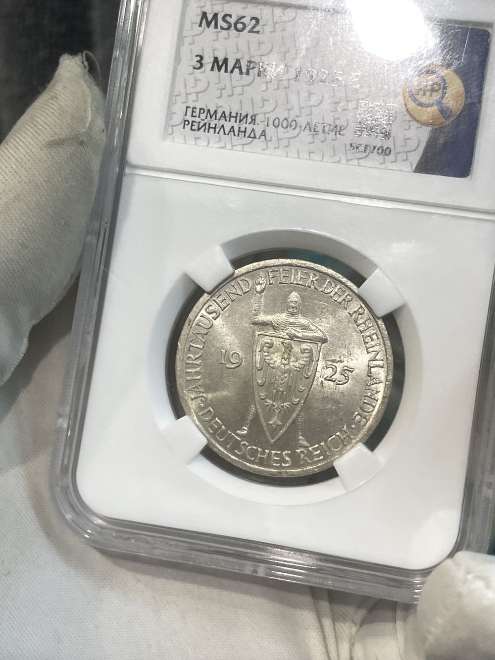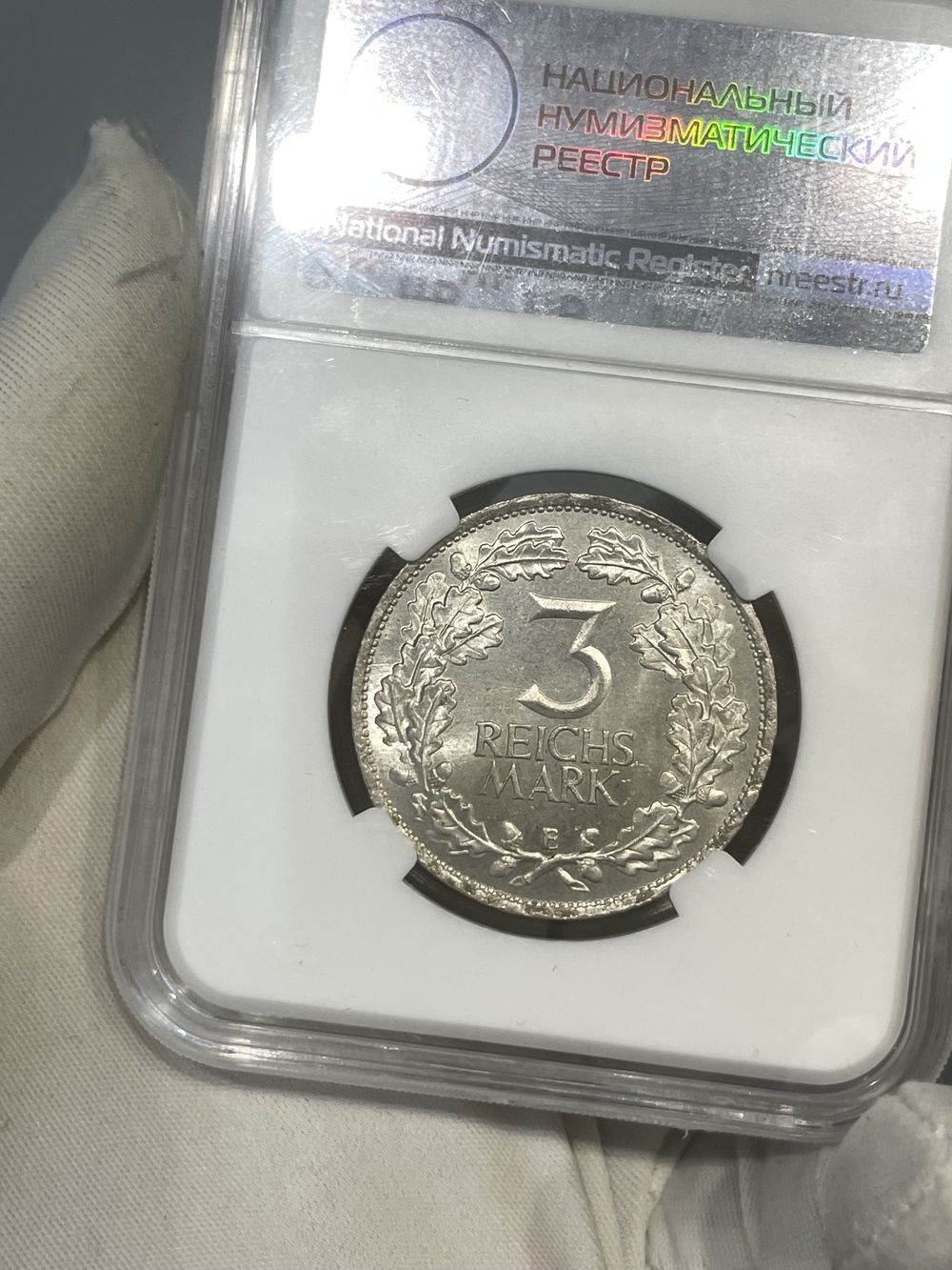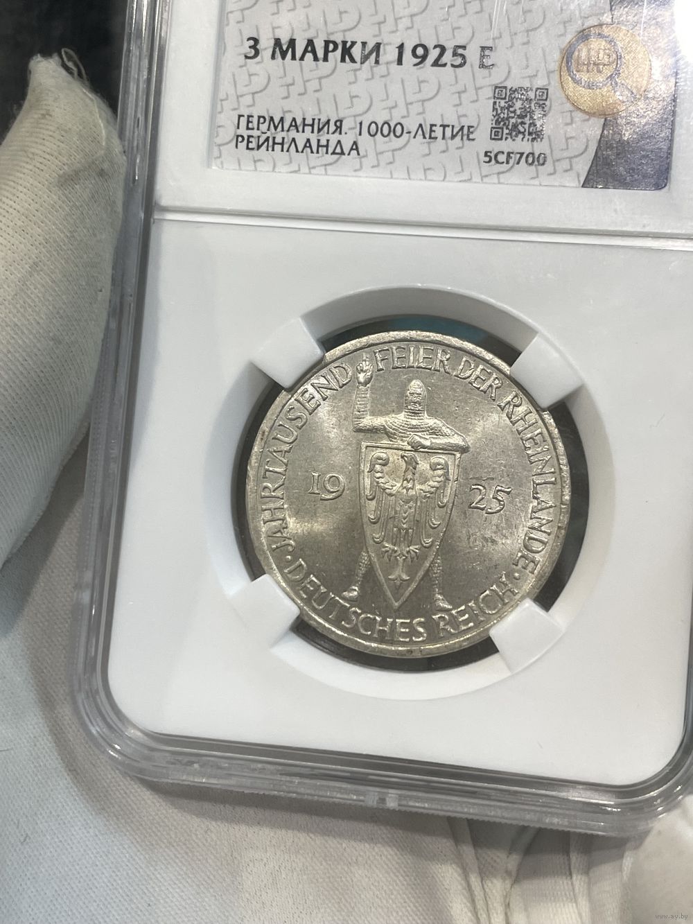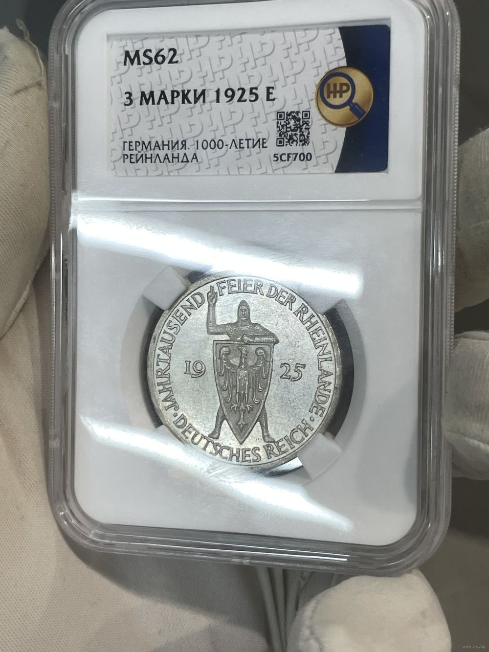 3 марки 1925 E нечастая монета в ms 62 !( заниженный грейд при перегрейде вполне может взять PL , или грейд на несколько пунктов выше ) зеркальная , яркая !