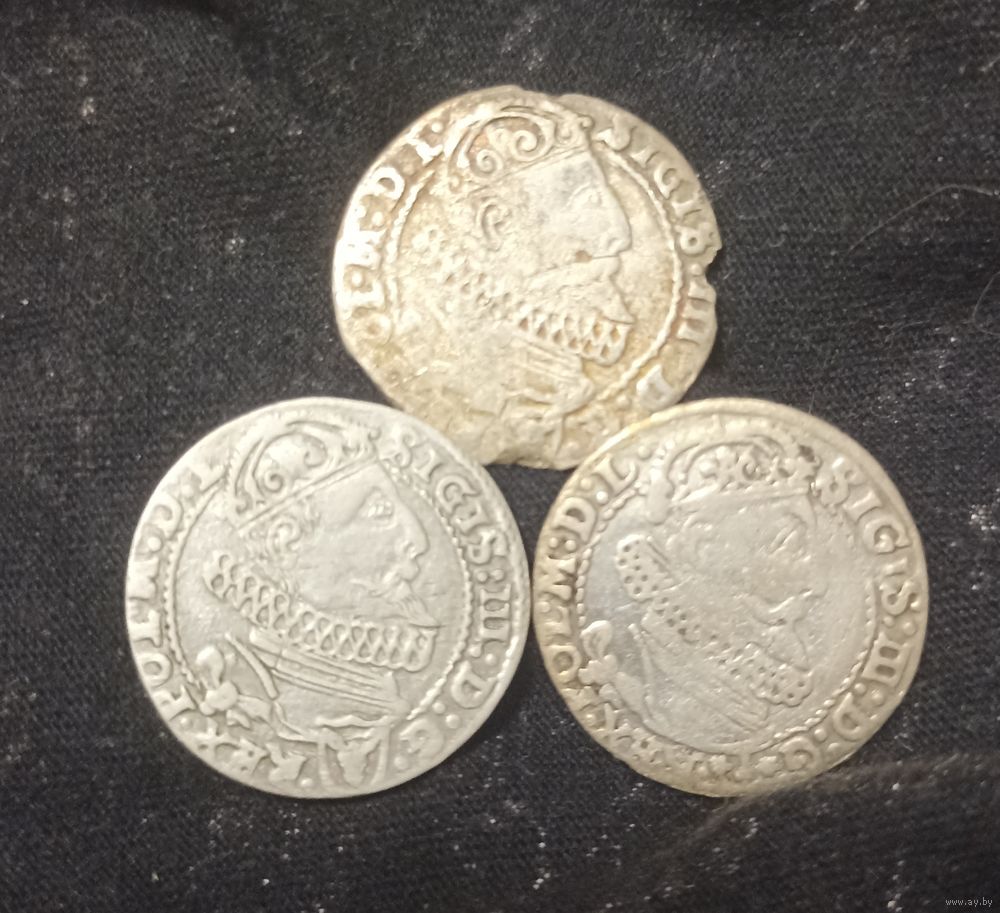 Три монеты по 6 грошей Сигизмунд 3 Ваза