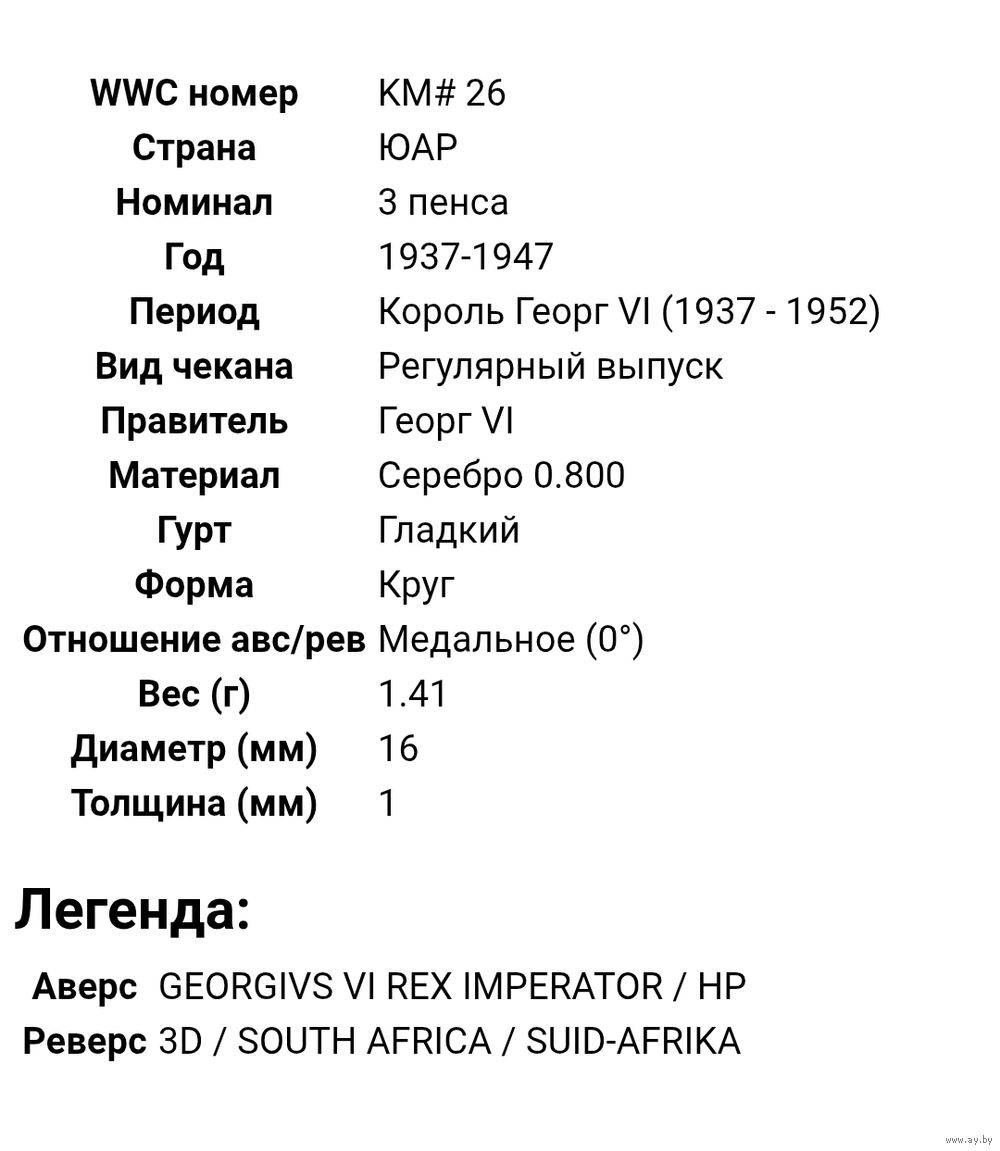 | Состояние | III (Коллекционное, VF) |
