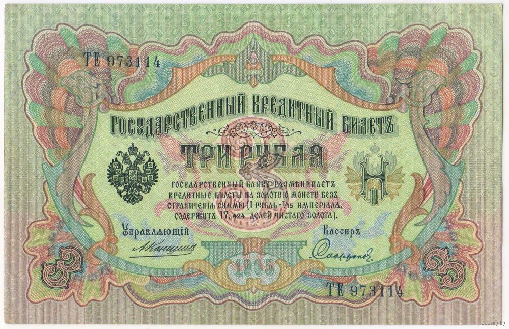 3 рубля 1905 г. Коншин - Софронов . НT 973114 Состояние ЕF-aUNC !