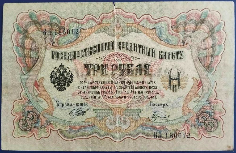 3 рубля 1905 г. Шипов-Гаврилов. ВЛ.