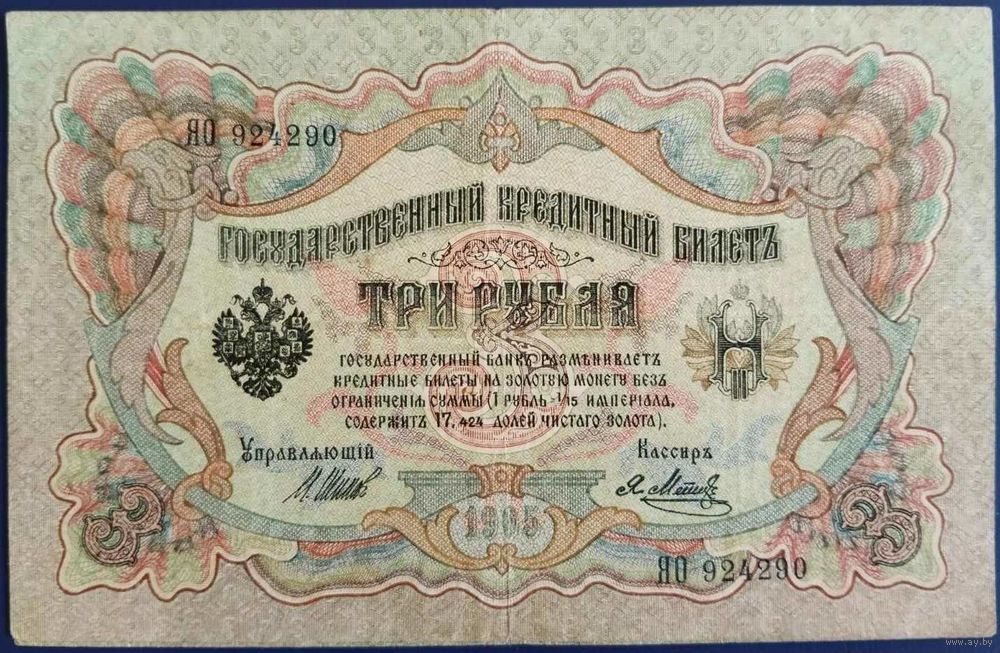 3 рубля 1905 г. Шипов-Метц. ЯО.