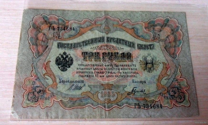 3 рубля 1905 г.в. Г Ъ 734684