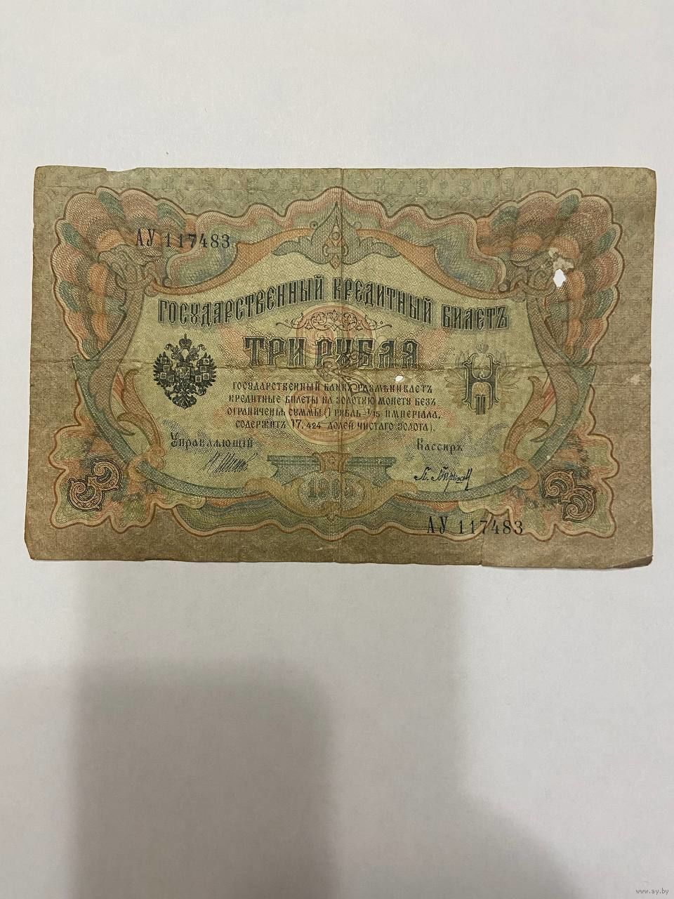 3 рубля 1905 Шипов Барышев АУ 117483 -1511