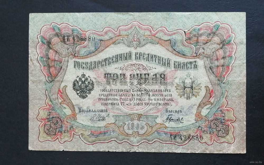 3 рубля 1905 Шипов Гаврилов АИ 428880 #0004 БРАК