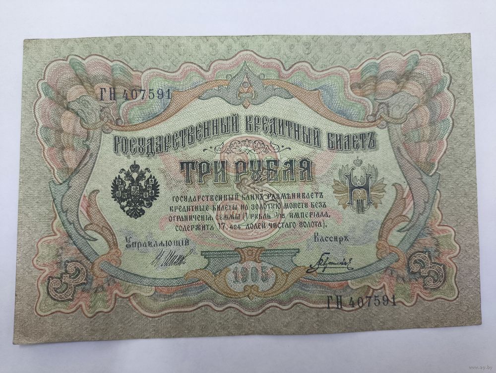 3 рубля 1905. Шипов -Гаврилов . Серия ГН