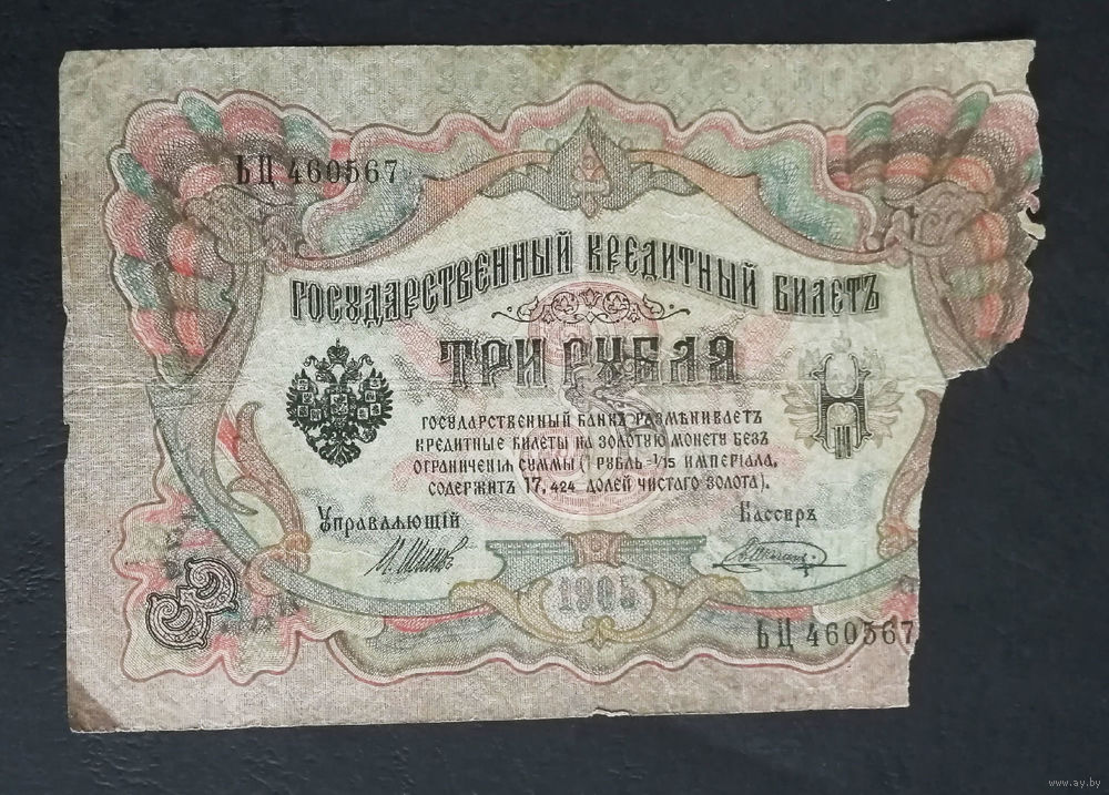 3 рубля 1905 Шипов Шагин ЬЦ 460567 #0225