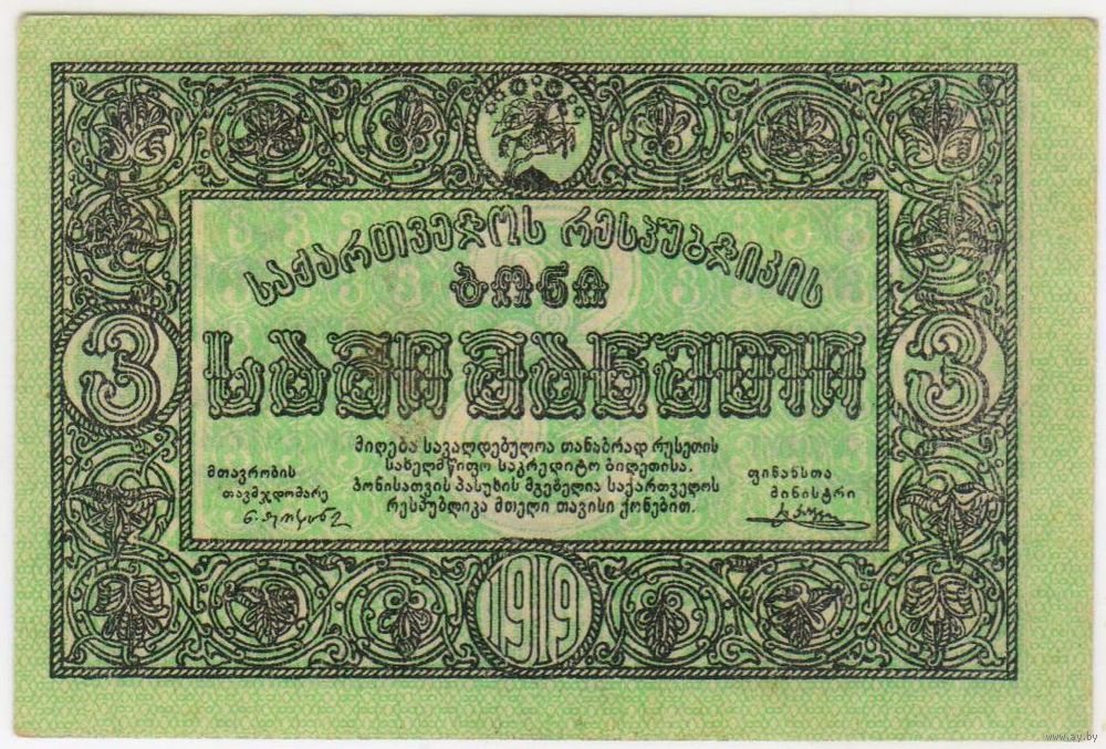 3 рубля 1919 год Грузия. СОСТОЯНИЕ!!! аUNC