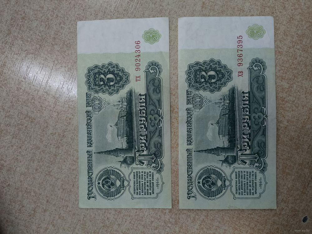 3 рубля 1961 года . 2 штуки .