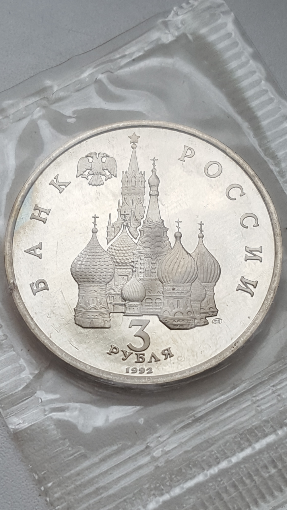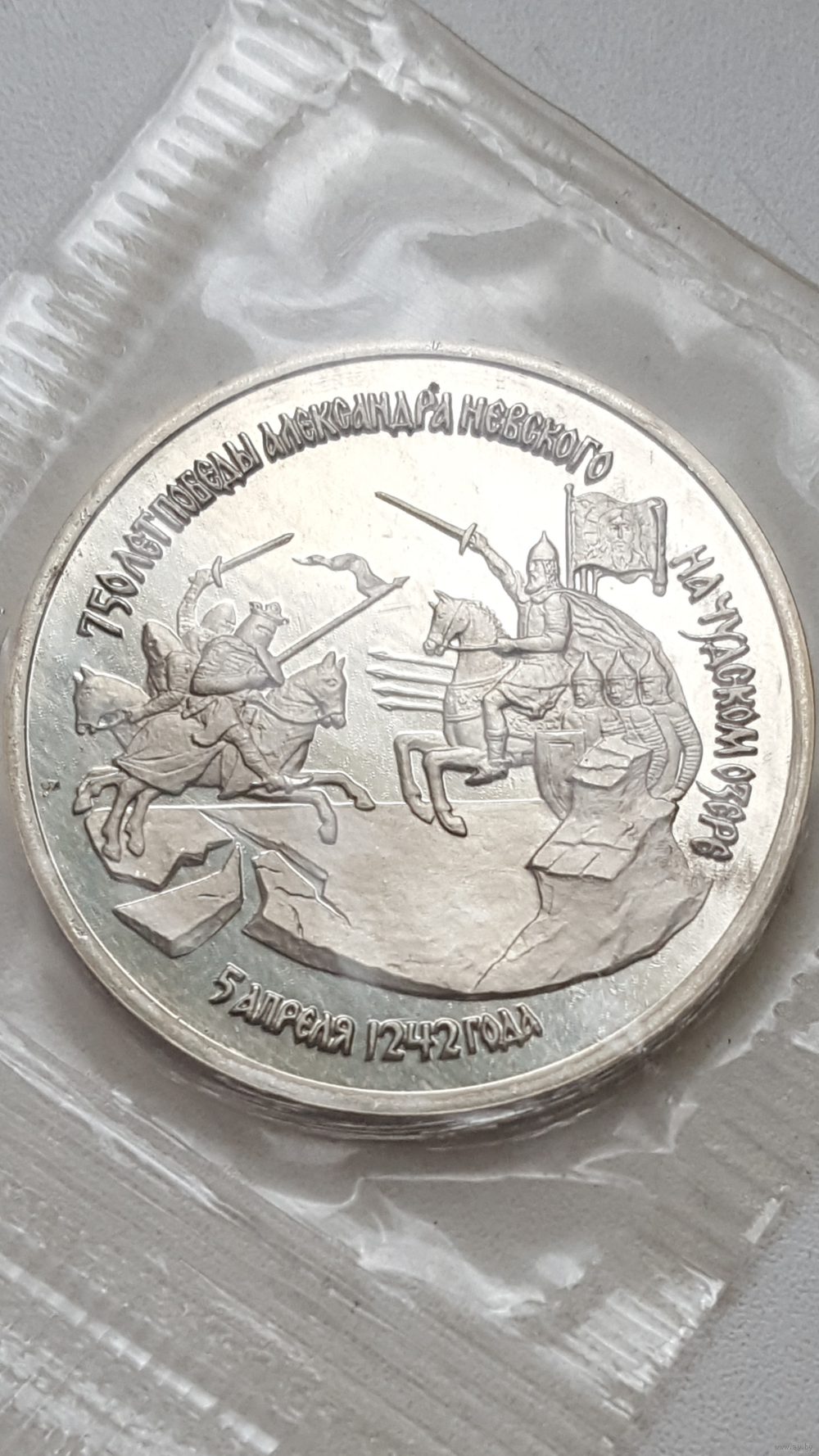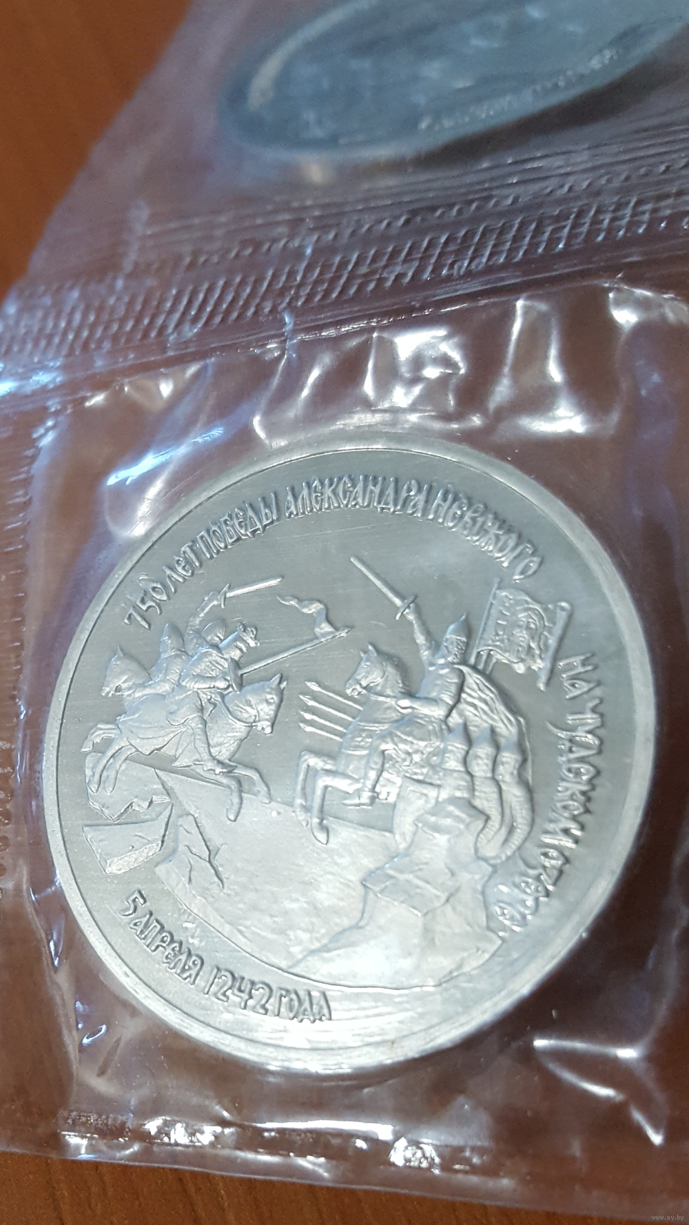 3 рубля. 1992 г.. 2 шт.. 750 лет победы А.Невского. Proof. Цена за две. Смотрите в лотах другие мои монеты.