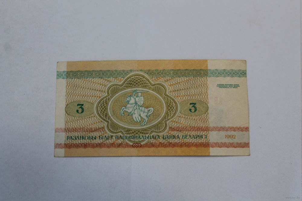 3 рубля 1992 год.Серия АБ