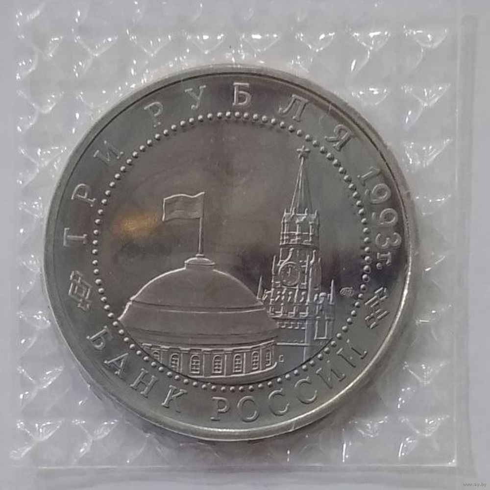 3 рубля 1993 г 50-лет Победы на Курской дуге в банковской запайке