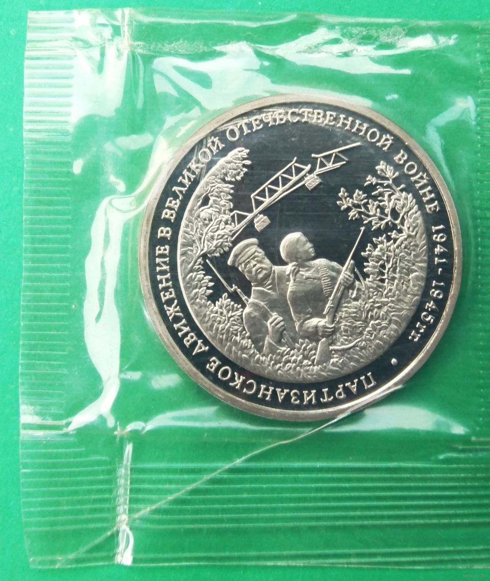 3 рубля 1994г. Партизаны. Партизанское движение в Великой Отечественной войне. Пруф. Банковская запайка.