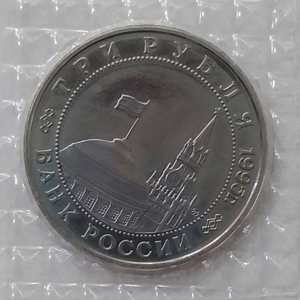 3 рубля 1995 г Встреча на Эльбе в банковской запайке