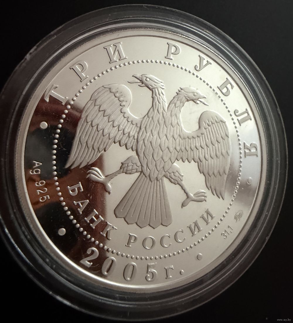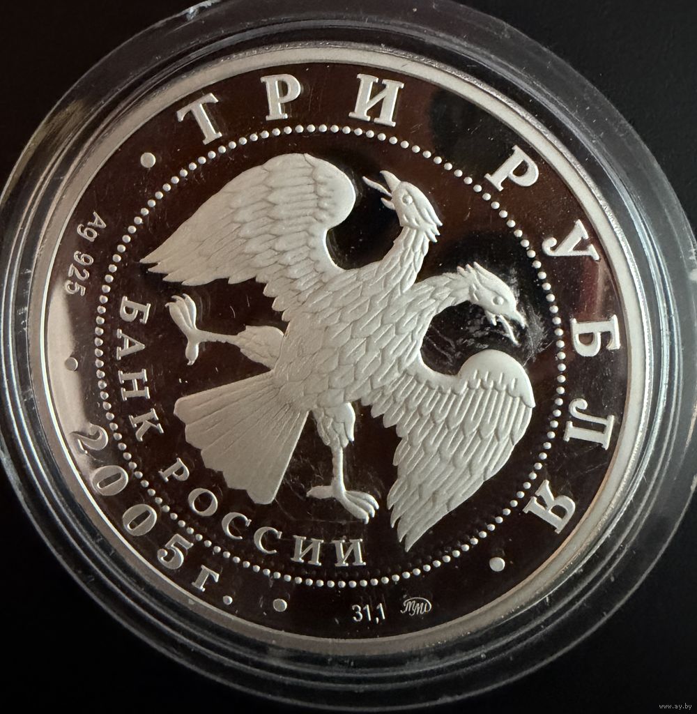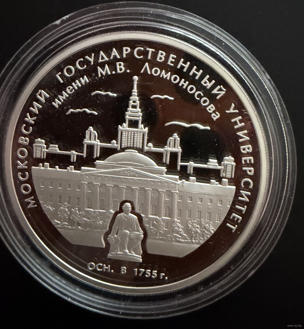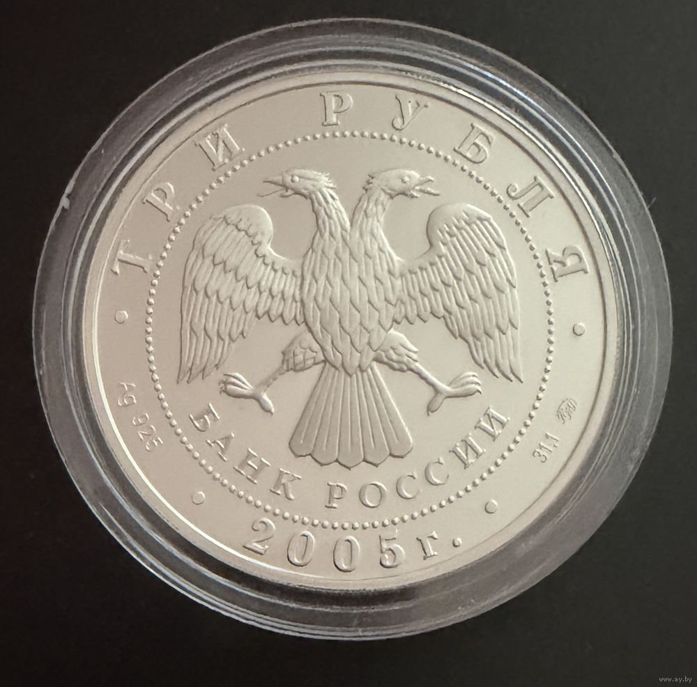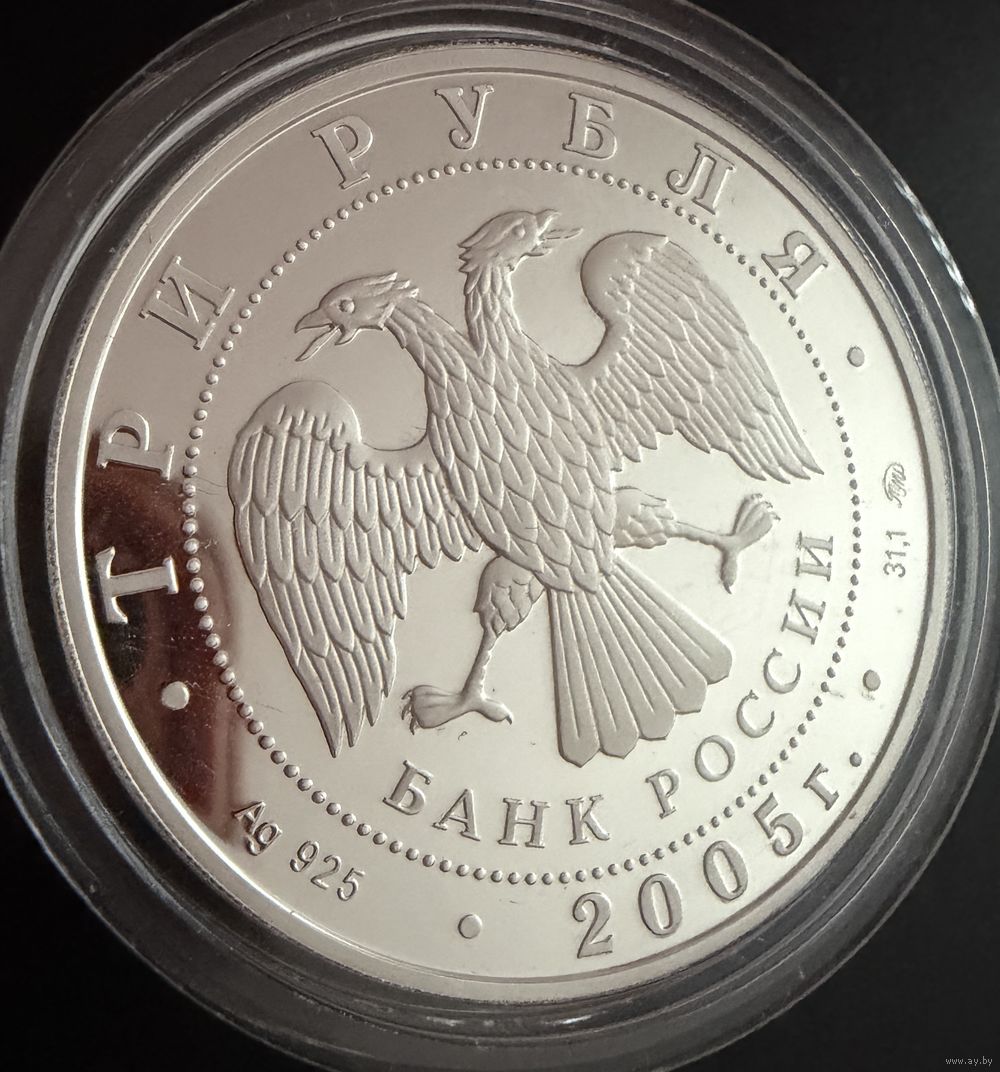 3 рубля 2005 г. МГУ им. Ломоносова. Редкость !!! Россия. УНЦИЯ. Серебро