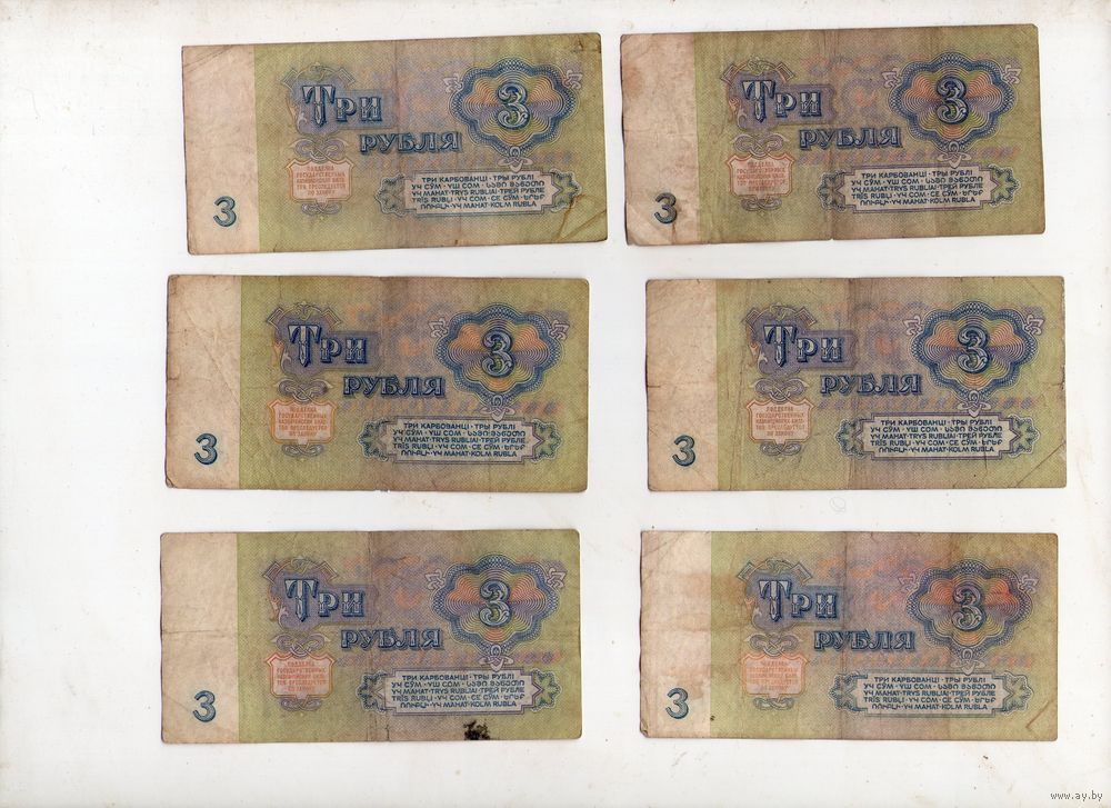 3 рубля СССР. 6 штук. (10)